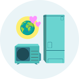 空気中の熱という再生可能エネルギーを使い、創エネと省エネを同時に実現できるという独自の特徴を持っています。